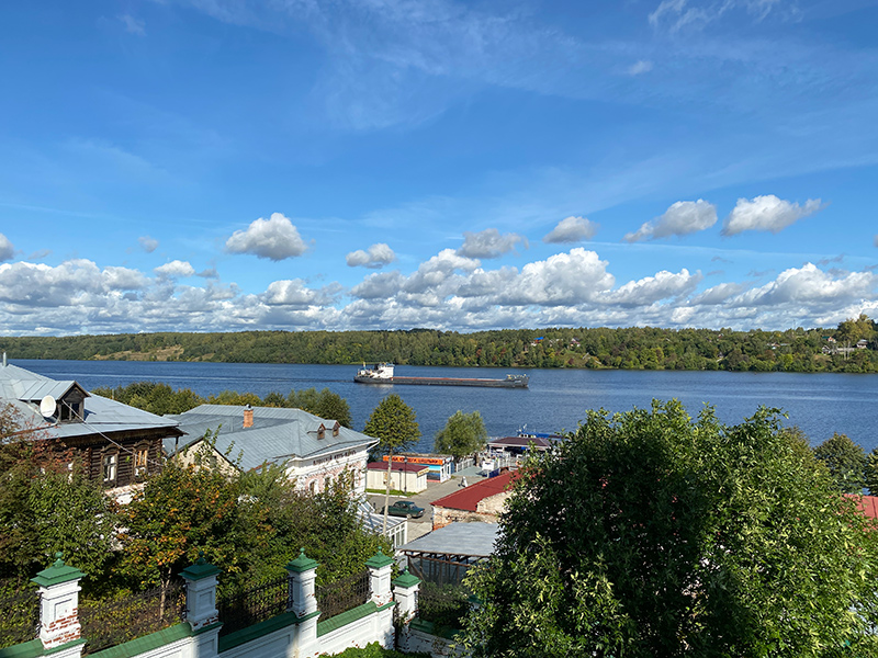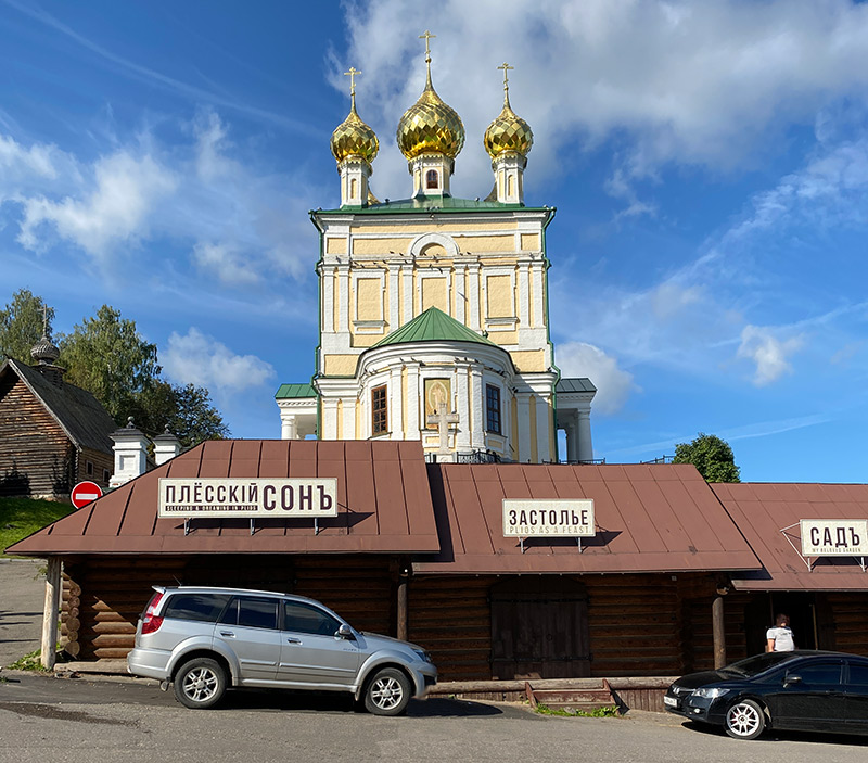 Дальше на Торговой площади высится пятиглавая церковь Воскресения Христова, построенная в 1817 году. Здесь же открывается прекрасный вид на Волгу.